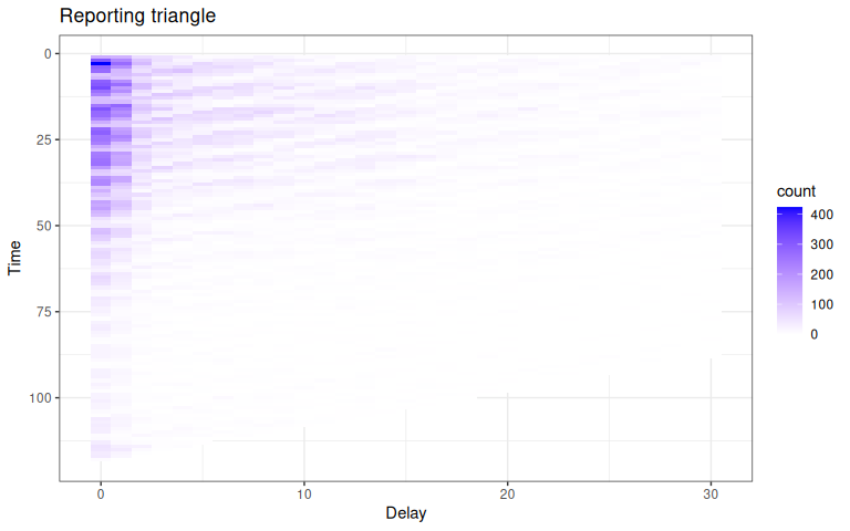 labs(title = "Reporting triangle", x = "Delay", y = "Time") +