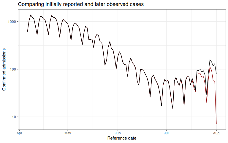 Our task will be to estimate, from the data available up until August 1, 2021, the “final” number of cases at each reference date.