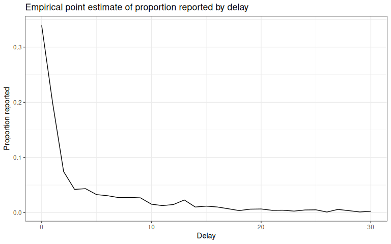 ggtitle("Empirical point estimate of proportion reported by delay") +